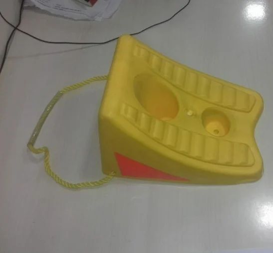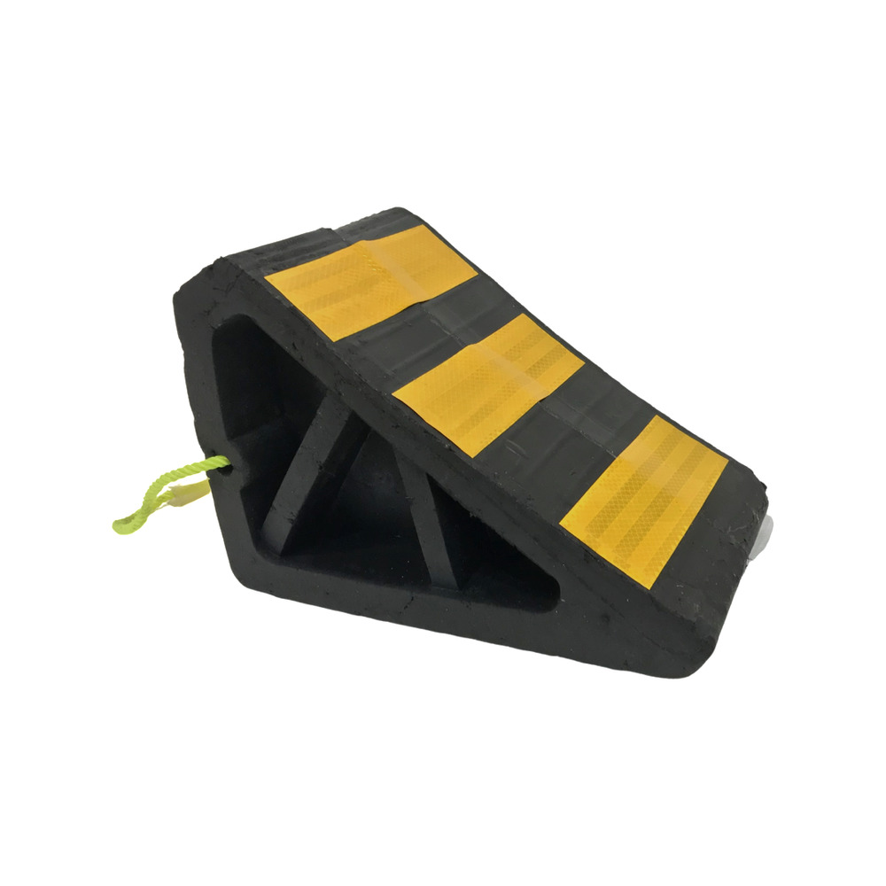 A rubber wheel chock is a device used to prevent vehicles from rolling or moving unintentionally. Here's a detailed description: